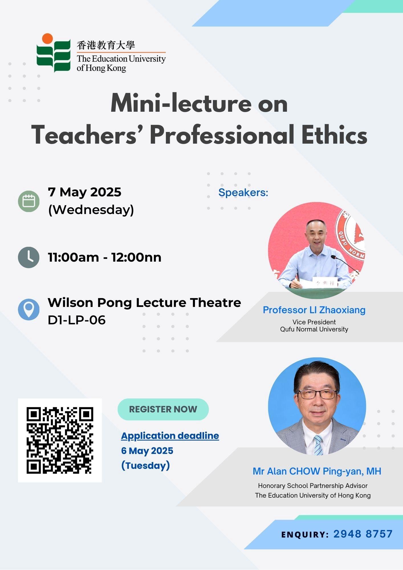 日期︰2025年5月7日 (星期三)時間︰上午11時至中午12時地點︰香港教育大學大埔校園龐維新演講廳(D1-LP-06)